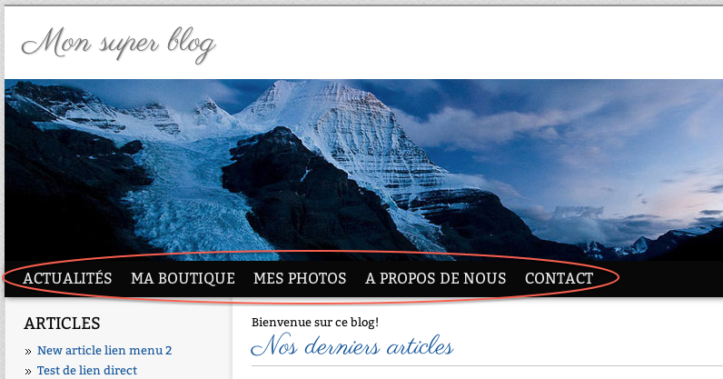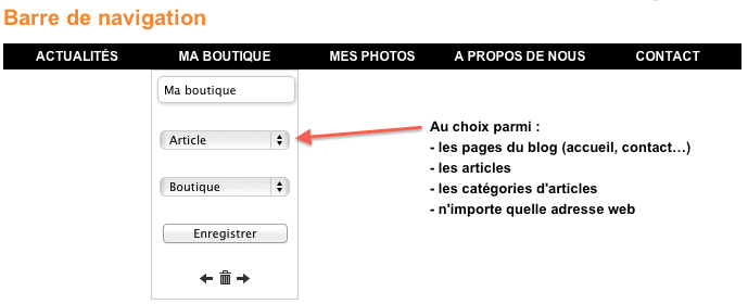 Vous pouvez par exemple configurer des liens vers des articles précis de votre blog (boutique, à propos, livre d'or) ou encore vers des sites externes à votre blog.