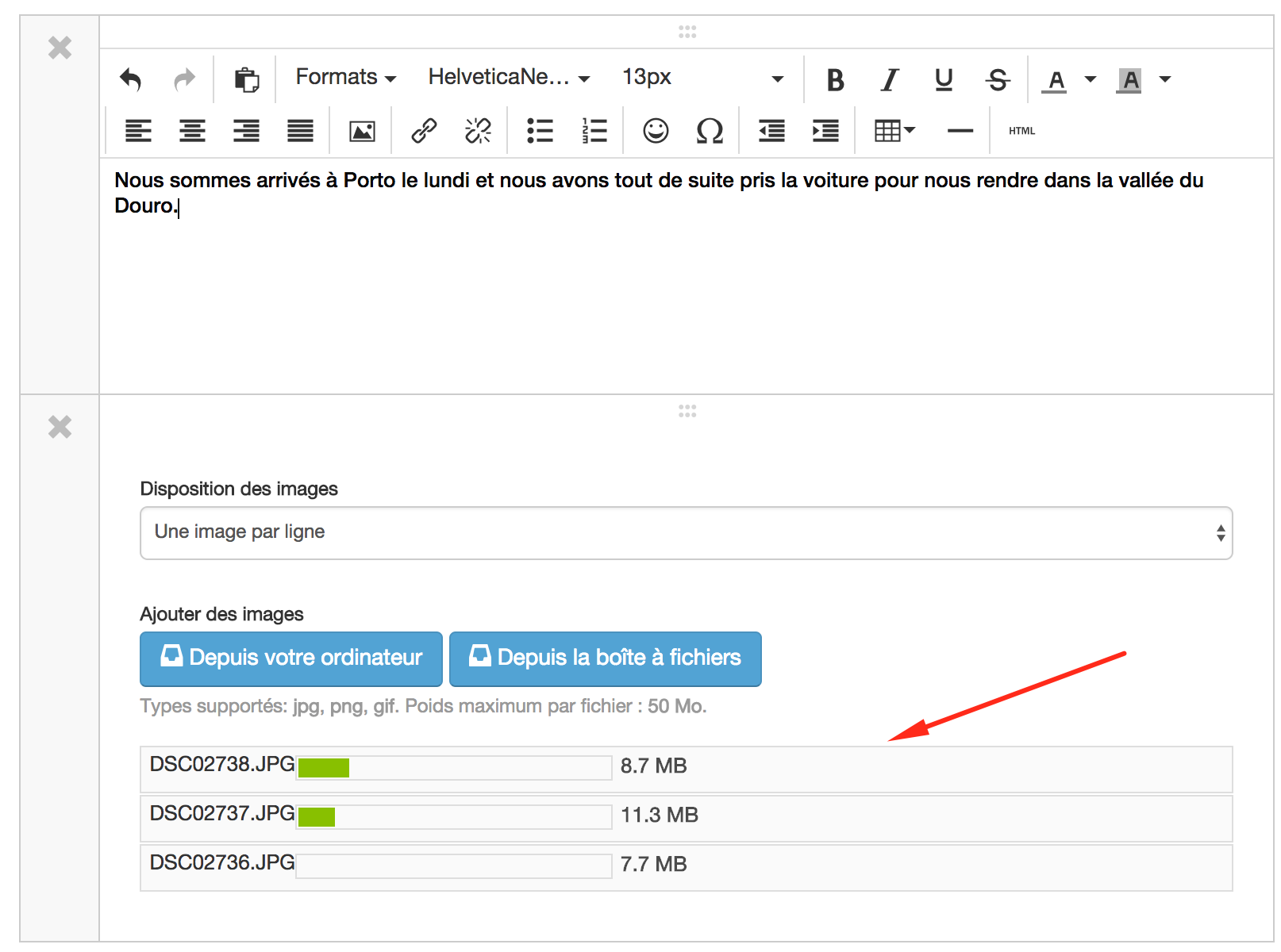 En utilisant le bloc images vous pouvez continuer à composer votre article pendant que vos images chargent. De quoi gagner pas mal de temps si vous avez une connexion plutôt lente !