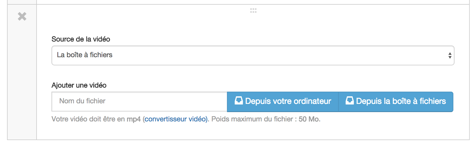 Il est désormais possible d'héberger les vidéos dans la boîte à fichiers et ainsi de ne plus être dépendant d’une plateforme comme Youtube ou Dailymotion.
