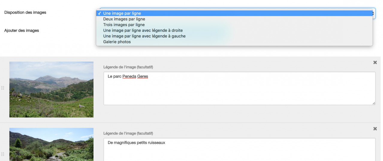 Avec ce nouveau composeur c'est beaucoup plus simple : il suffit d'ajouter les images dans un bloc Image puis ensuite de choisir la disposition souhaitée parmi plusieurs modèles.